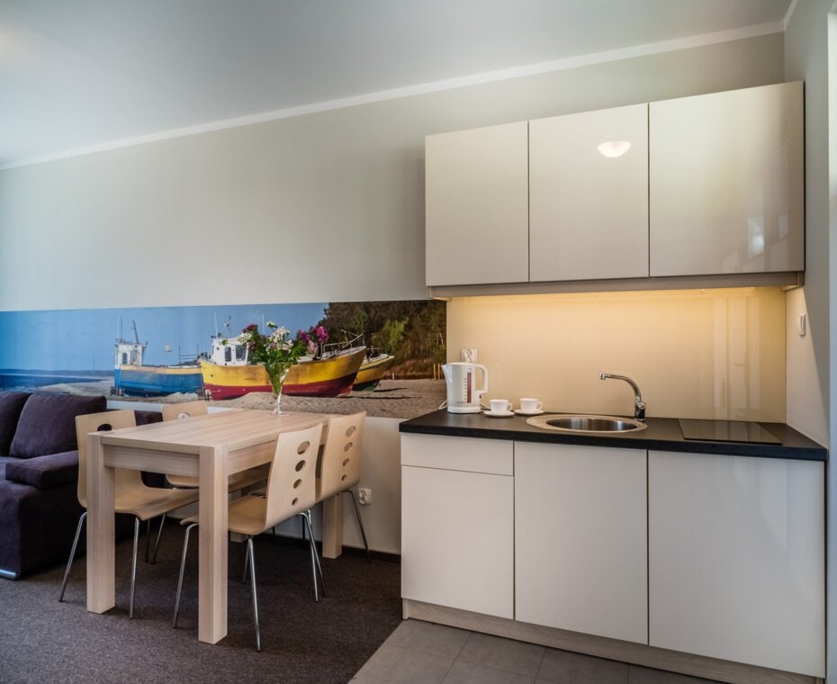 A large, fenced green area with a playground, an outdoor gym, playing fields, a barbecue area, a will allow for attractive time spent with the family and true relaxation on the Baltic Sea.