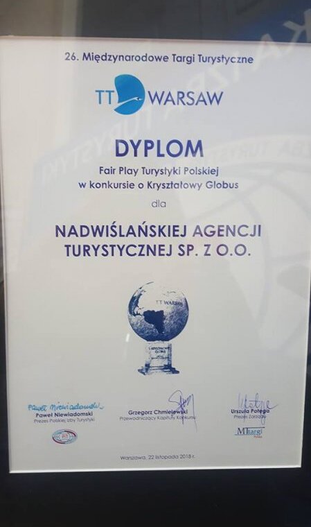 The Polish Chamber of Tourism and MT Targi once again jointly awarded the Fair Play Polish Tourism Crystal Globe award. This year it went to NAT. The award was received by President Paweł Niewiadomski and President Urszula Potęga, Vice President of the Management Board of NAT, Aleksander Wierzba. The award was received during this year's XXVI International Trade Fair TT Warsaw