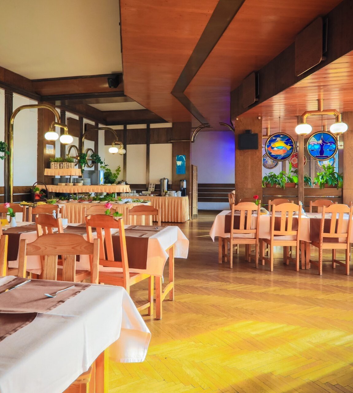Restauracja hotelowa tworzy atmosferę, w której Goście mogą cieszyć się smakami znanych i lubianych dań.