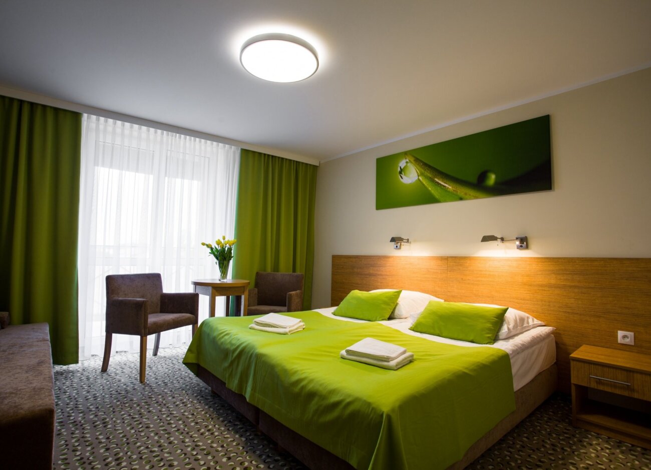 Choć nasze pokoje są nowoczesne, w hotelu w Sarbinowie dbamy o przytulne detale, które sprawiają, że poczujesz się jak w domu. Miękkie poduszki, ciepłe oświetlenie i delikatne tkaniny tworzą przyjemną atmosferę, która sprzyja relaksowi.